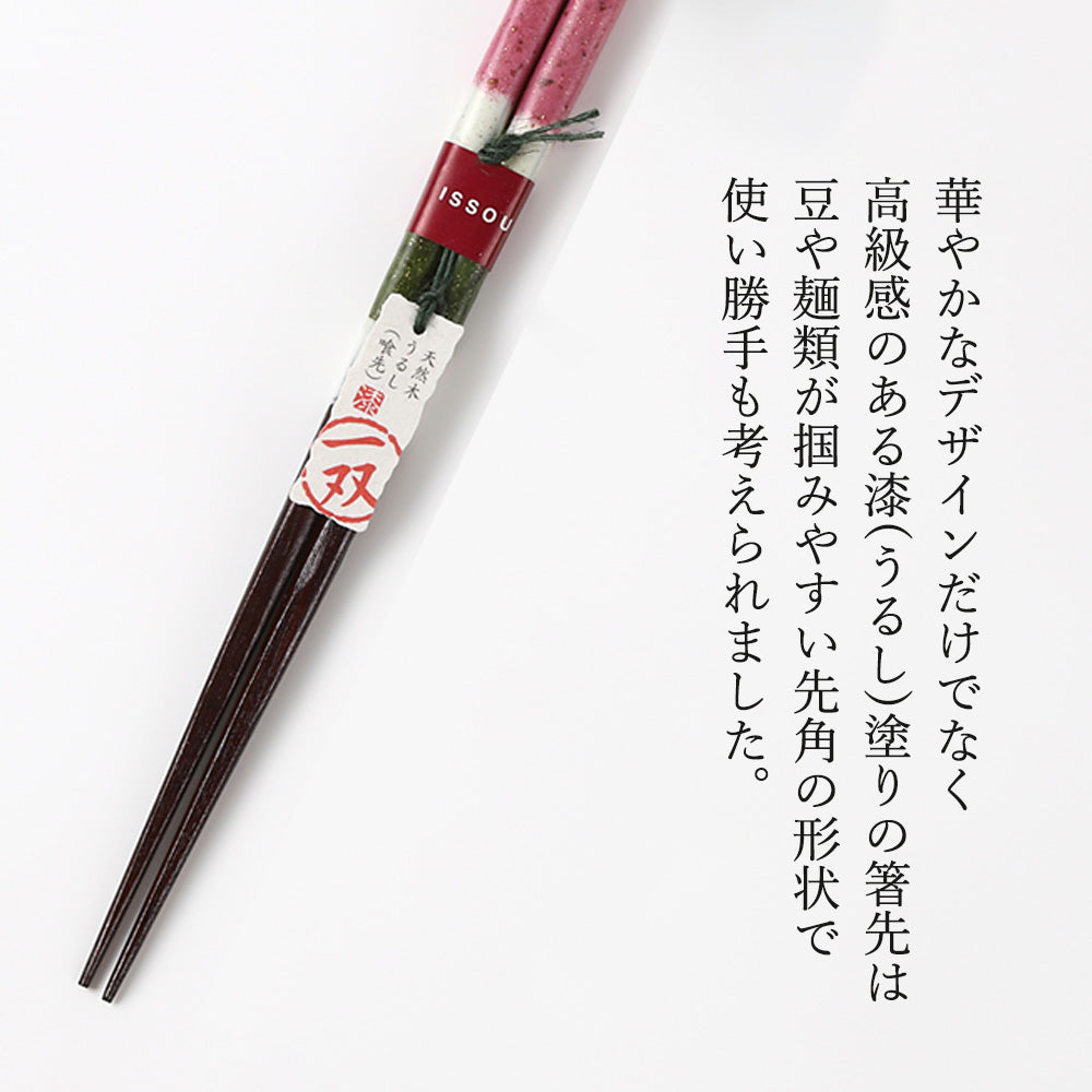 高級感が人を魅了してやまない! このお箸は伝統技法に現代的デザインを取り入れました。 若狭塗り箸の技法は、今から約四百年前に誕生しました。 木地には天然木が使われています。 桐箱入りのお箸は贈り物に最適です。 |
