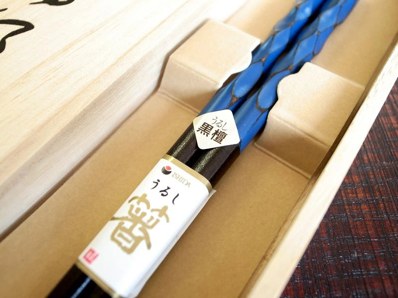 箸 鎌倉亀甲 黒檀 男性用 一膳 桐箱入り