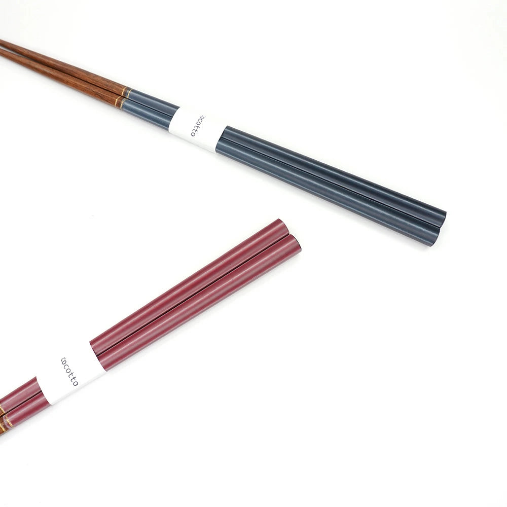 | 材質:天然木 塗り:ポリエステル 形状:持ち手、六角 / 箸先、丸 |