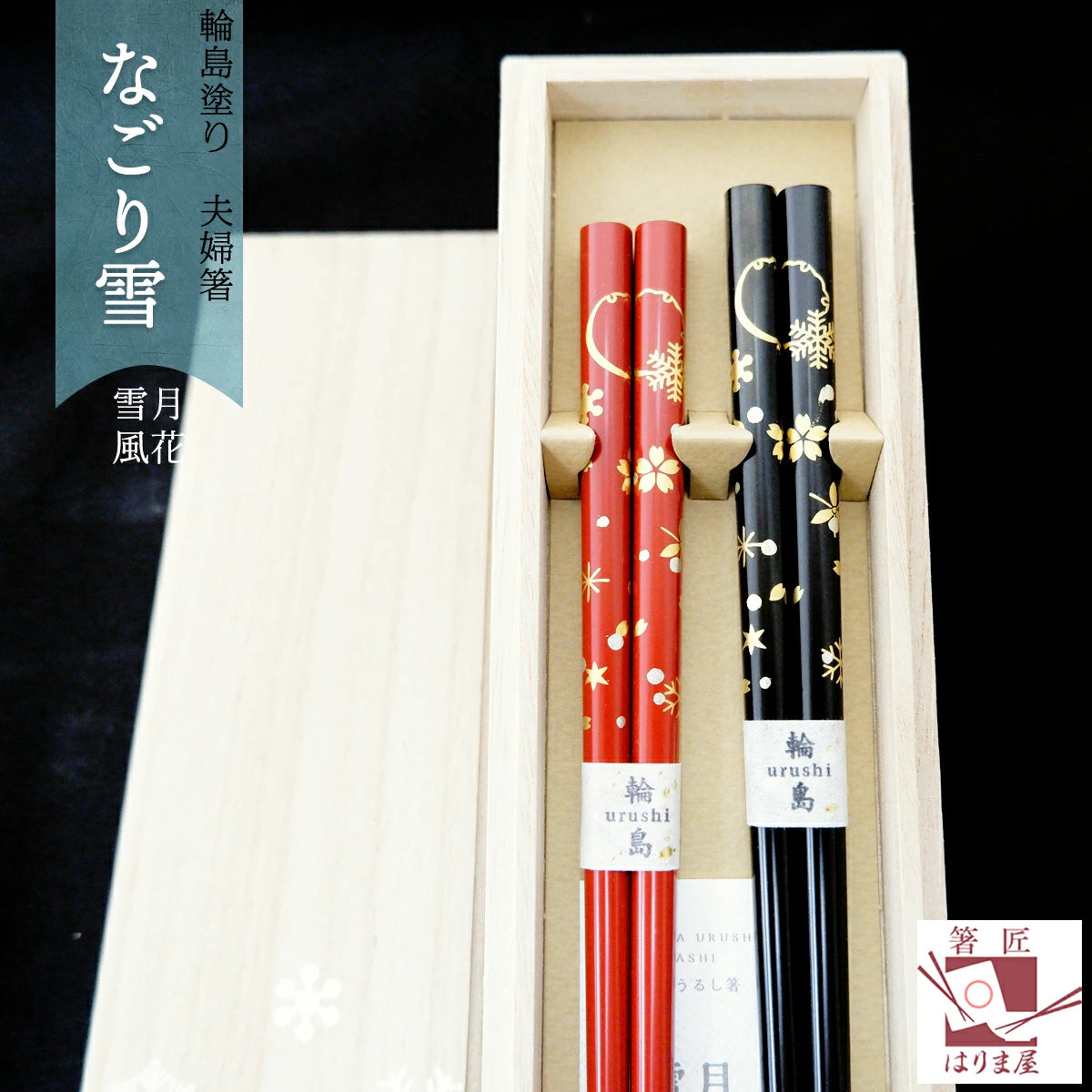 箸 輪島塗 なごり雪 雪月風花 夫婦箸 桐箱入り